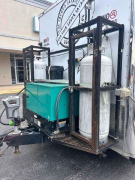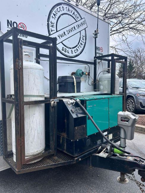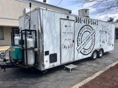 2019 Nexhaul 8.5x24 trailer. Built out as a bbq concessions trailer. Has everything needed to start working immediately. Currently permitted for Frederick and Washington County MD and Berkeley & Morgan County WV. Was also approved to work onsite at Fort Detrick military base in MD. The trailer works perfectly. Currently setup to cook, sell and serve bbq. But can easily be changed to serve other food. Equipment consists of 8 Hood Mart hood vent with kidde range guard fire suppression, full size 3 bay sink, hand sink, Gerard direct heating tankless RV propane water heater, 21 gallon fresh water tank, 30 gallon gray water tank, 270 KC cabinet smoker, beverage air upright single door fridge, Vulcan 6 burner range/ oven, Metro full size upright warming cabinet, Victory 60 mega top prep fridge, Eagle 48 3 bay propane steam table, Avantco 48 worktop fridge, 2- 100lbs propane tanks in custom propane cages, Cummins Onan 12,000 kw diesel generator on the front. Custom built 22 gallon diesel tank under rear of trailer. 2- 6' long aluminum exterior fold down shelves. Electric/ manual out door awning. Remote controled Outside led lighting and green under glow lights